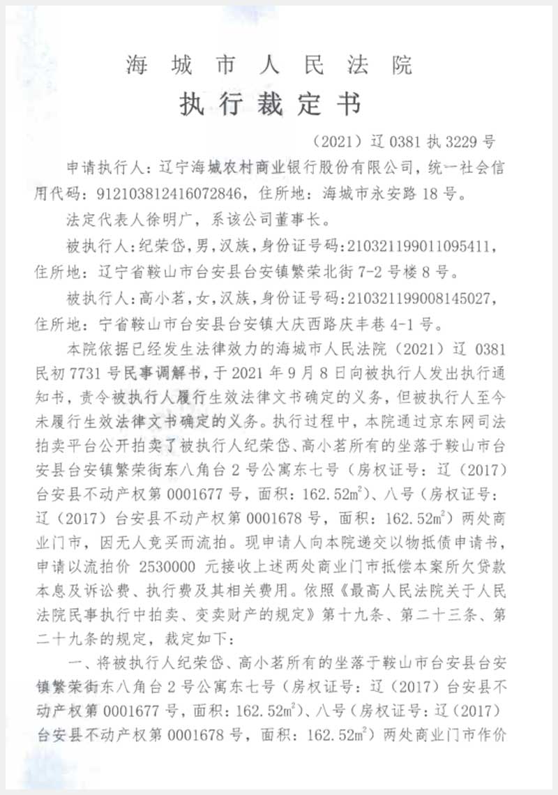 遼寧嘉和拍賣有限公司   咨詢熱線:024-22529012