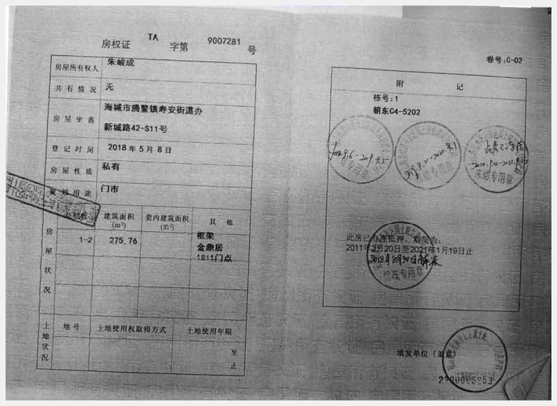 名稱:海城市騰鰲鎮(zhèn)壽安街道辦新城路42-S11號(hào)房產(chǎn) 面積:275.76㎡ 瀏覽次數(shù):1446