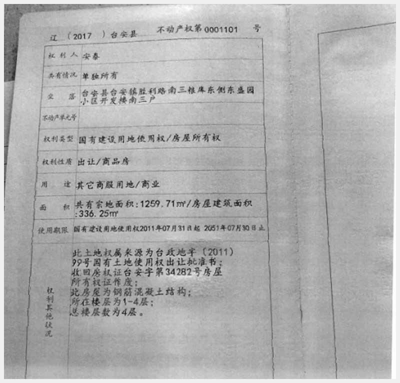 地址:臺安縣勝利路南三糧庫東側東盛園小區(qū) 標的號:180-1