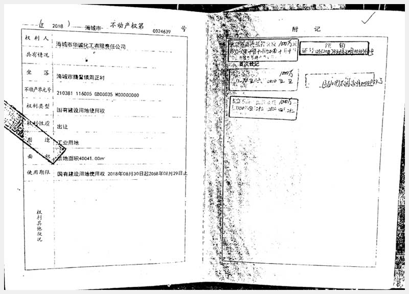 189-1號(hào) 海城市華誠(chéng)華工有限責(zé)任公司名下土地及機(jī)器設(shè)備