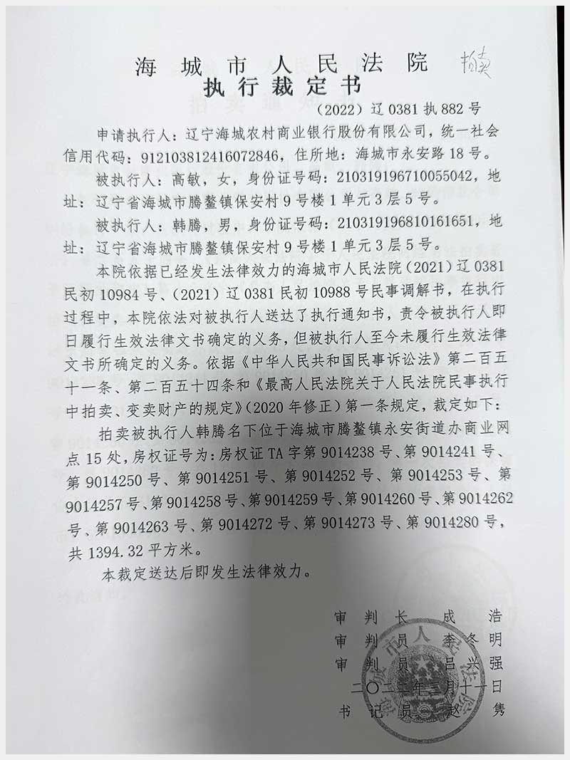 地址:海城市騰鰲鎮(zhèn)永安街道辦永安路 標(biāo)的號(hào):214
