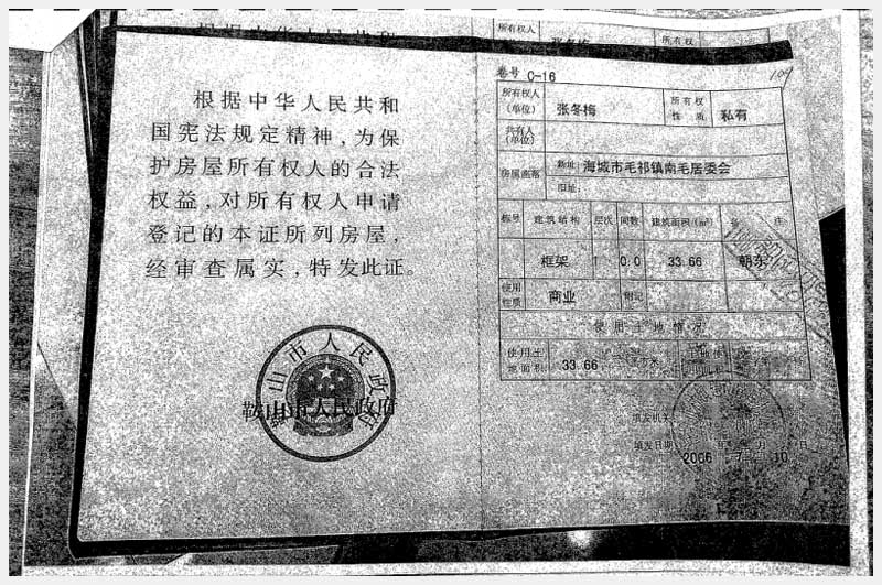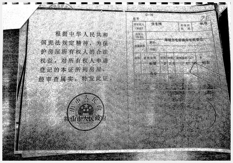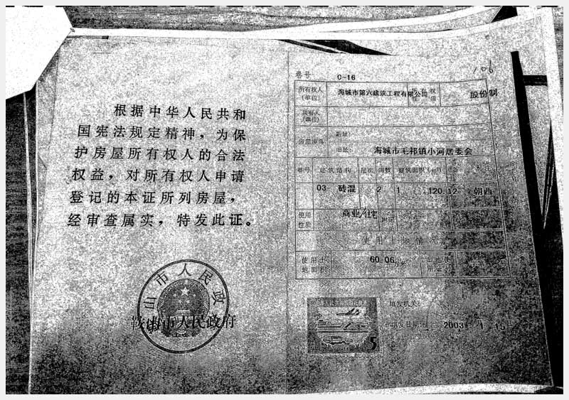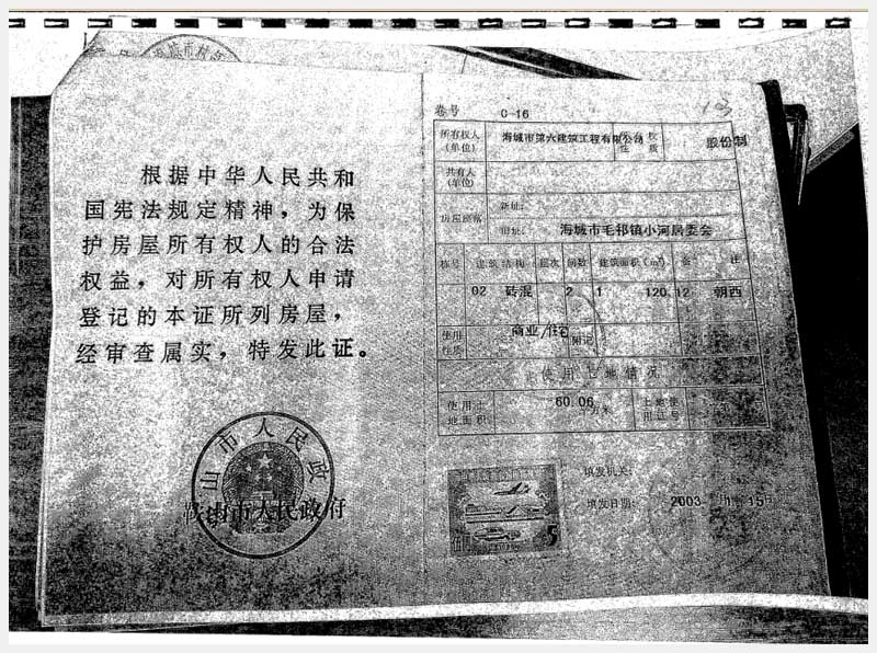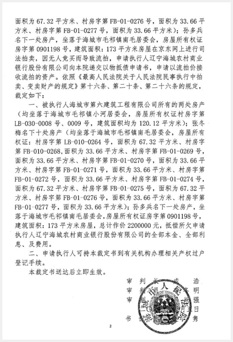 地址:海城市毛祁鎮(zhèn)南毛居委會 標的號:216-1
