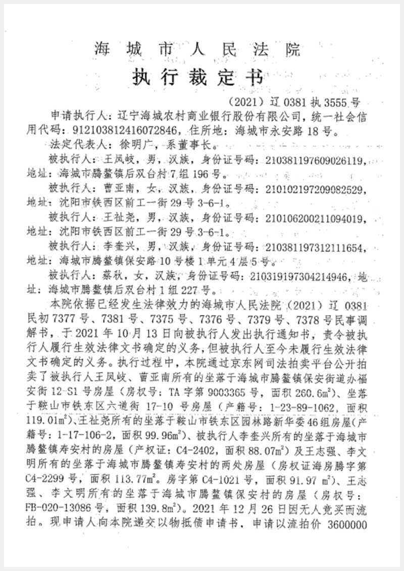 地址:海城市騰鰲鎮(zhèn)保安街道辦福安街 標(biāo)的號(hào):225-1