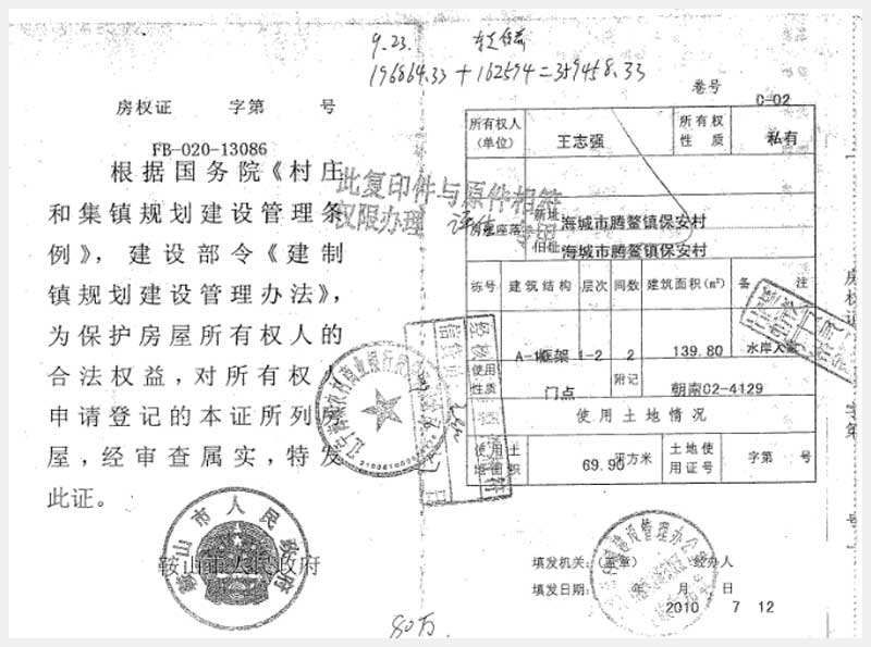 地址:海城市騰鰲鎮(zhèn)保安村 標的號:225-7