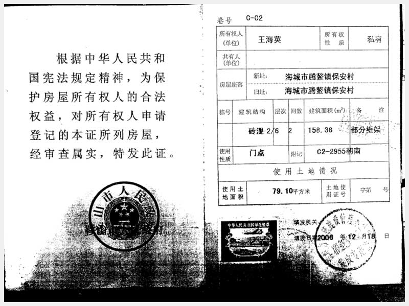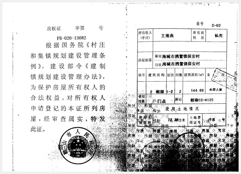 地址:海城市騰鰲鎮(zhèn)保安村 標(biāo)的號(hào):229