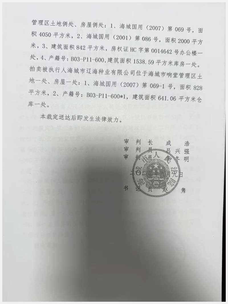 262-3號 海城市響堂管理區(qū)房產(chǎn)及土地使用權(quán)