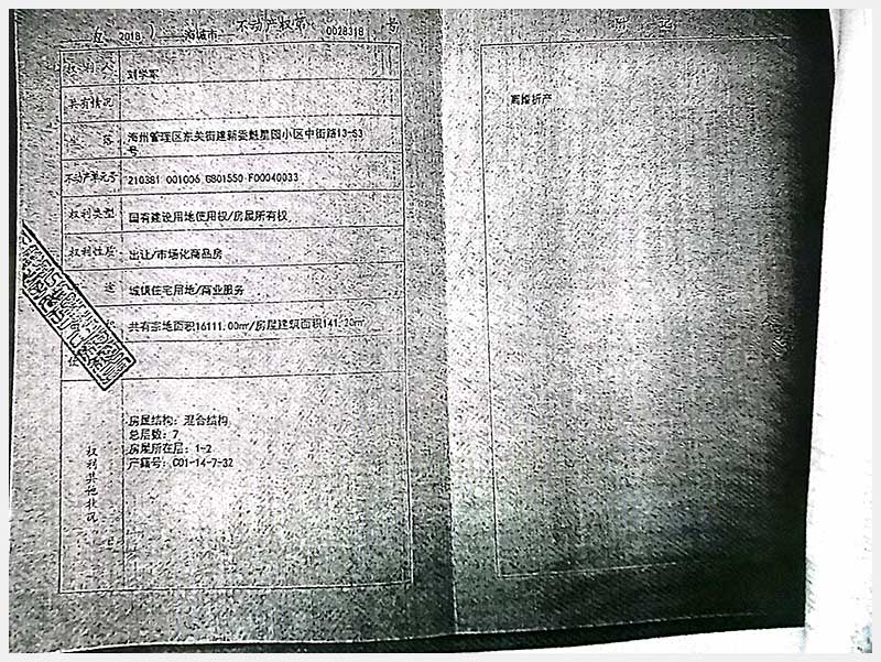 271號 海城市海州管理區(qū)東關(guān)街建新委魁星園小區(qū)中街路13—S3房產(chǎn)