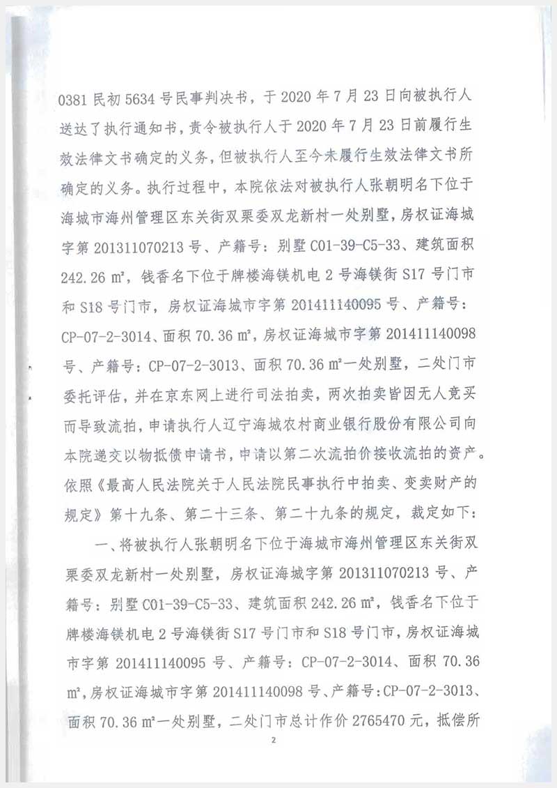 名稱:海城市牌樓鎮(zhèn)海鎂機(jī)電2號海鎂街97-S17號、S18號房產(chǎn) 面積:70.36㎡/處 瀏覽次數(shù):390