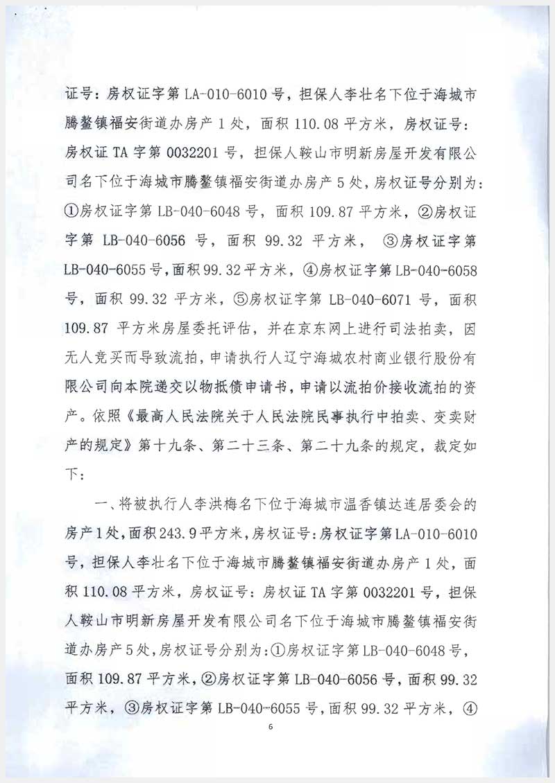 295號 海城市騰鰲鎮(zhèn)福安街道頤水嘉德二期6處房產(chǎn)