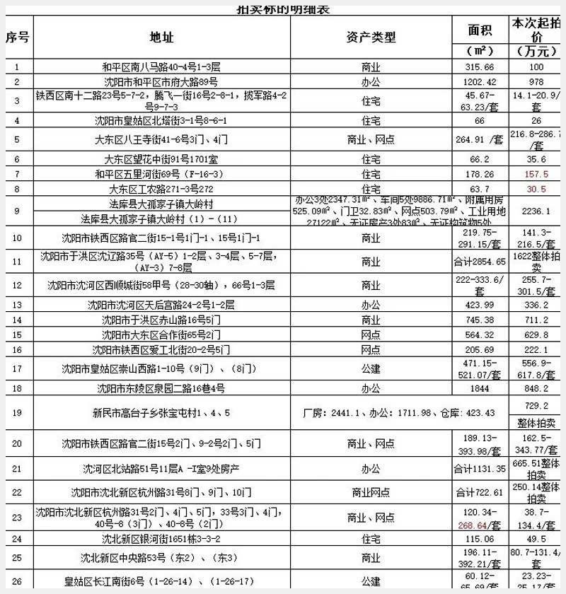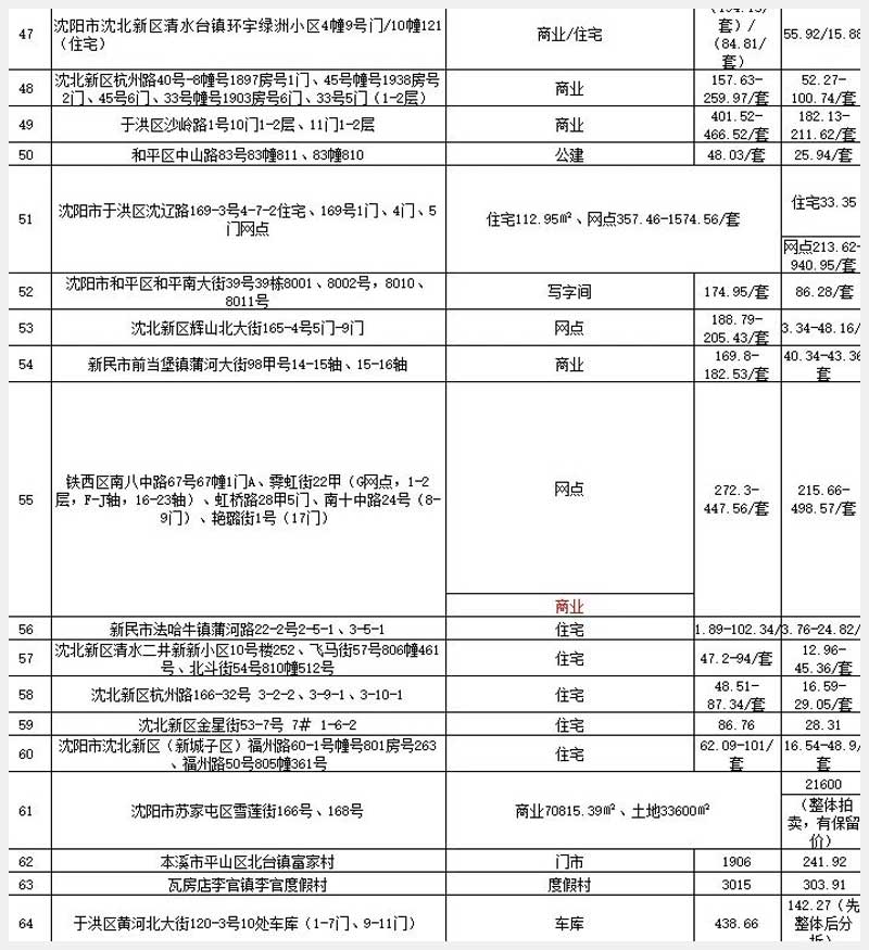 沈陽農(nóng)商行抵債資產(chǎn)