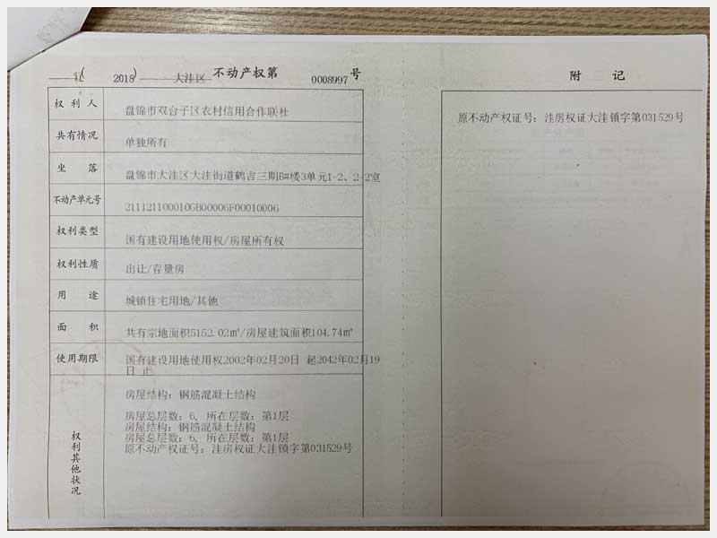 地址:盤錦市大洼鎮(zhèn)興盛街 標(biāo)的號(hào):19