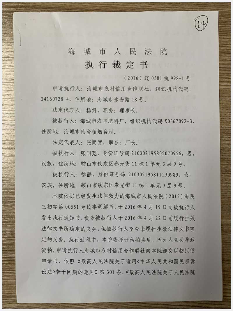 54號(hào) 海城市南臺(tái)鎮(zhèn)煙臺(tái)村房產(chǎn)及國(guó)有土地使用權(quán)