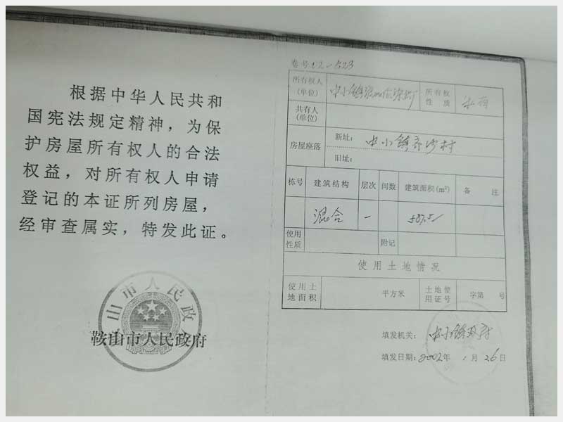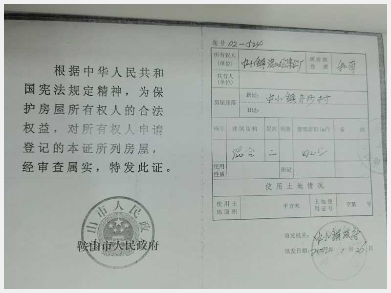 地址:海城市中小鎮(zhèn)齊沙河村 標(biāo)的號(hào):101