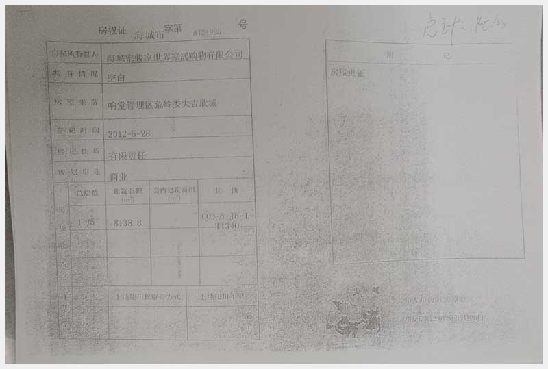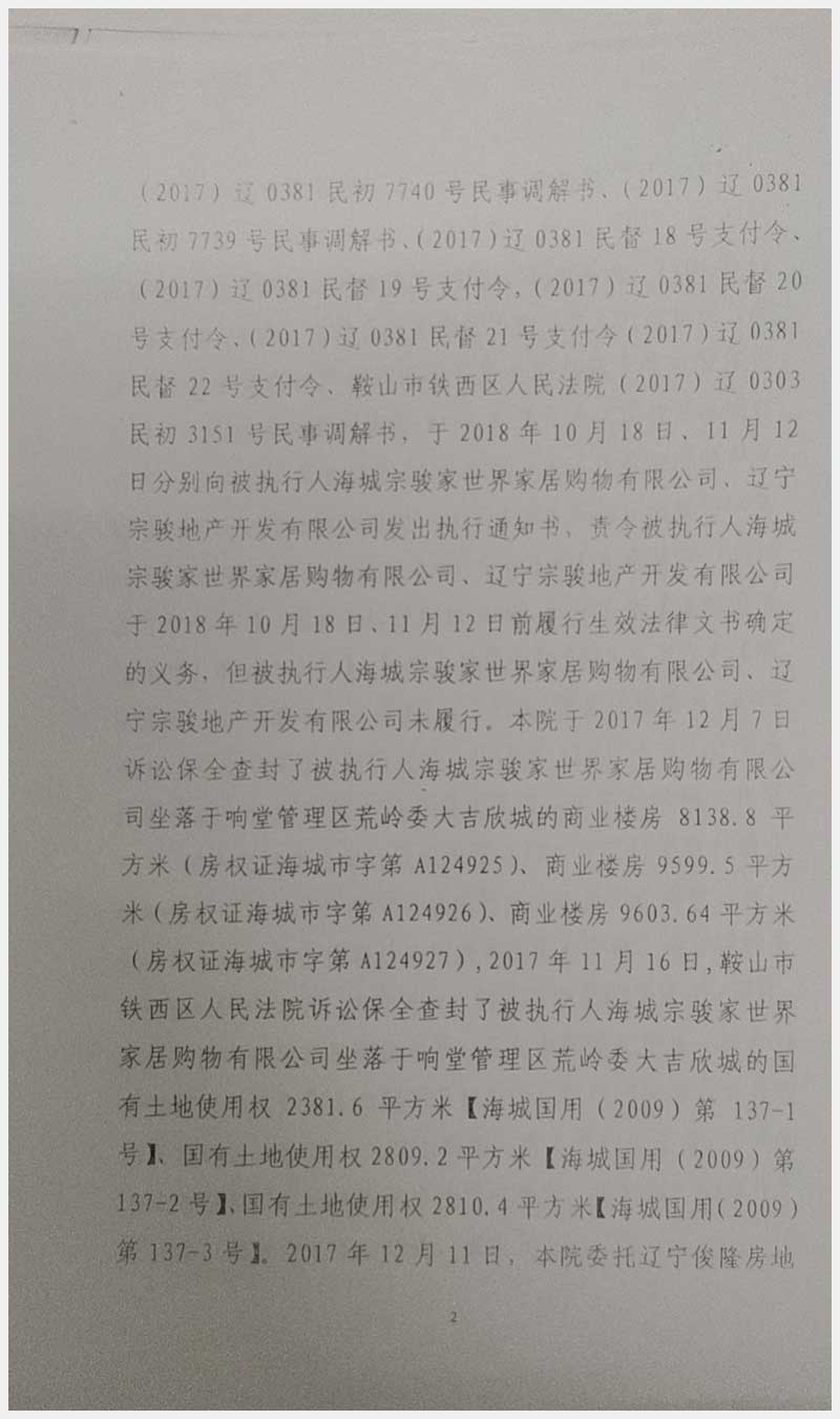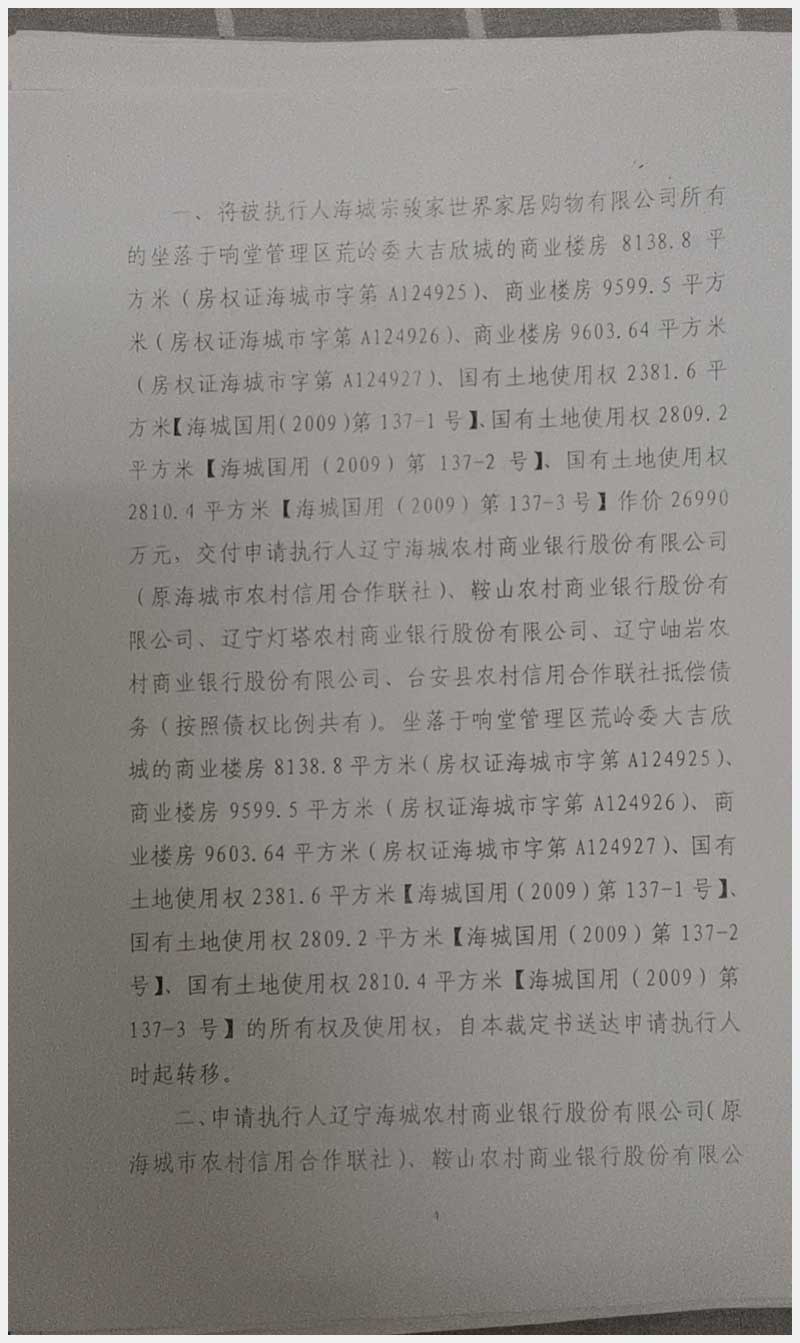 135號(hào) 海城宗駿家世界所屬的位于海城市響堂管理區(qū)荒嶺委大吉欣城商業(yè)樓房及國有土地使用權(quán)