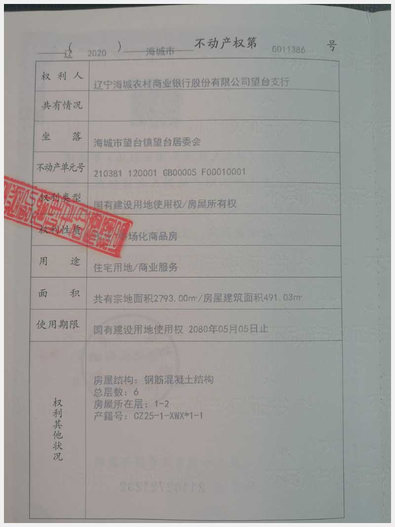 地址:海城市望臺(tái)鎮(zhèn) 標(biāo)的號(hào):
