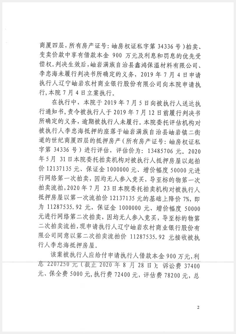 地址:岫巖縣岫巖鎮(zhèn)二街道世紀商廈 標的號:4