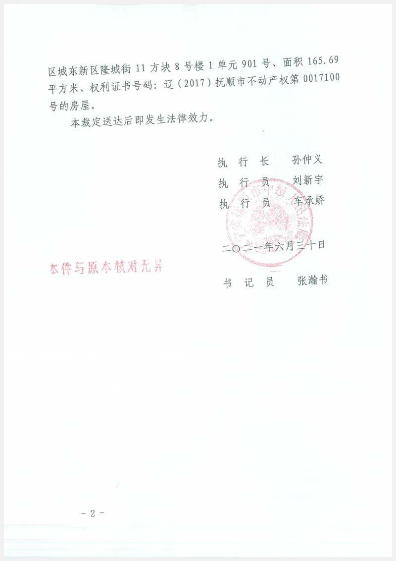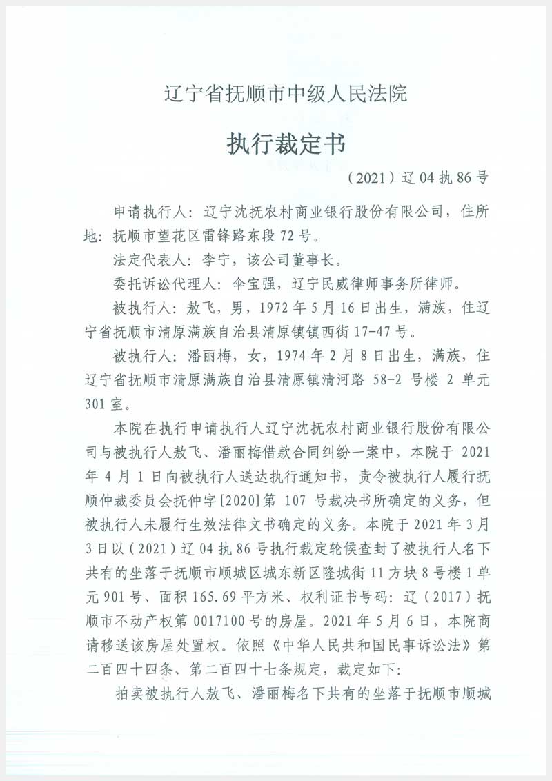 23號 撫順市順城區(qū)城東新區(qū)隆城街11方塊8號樓1單元901號房產(chǎn)