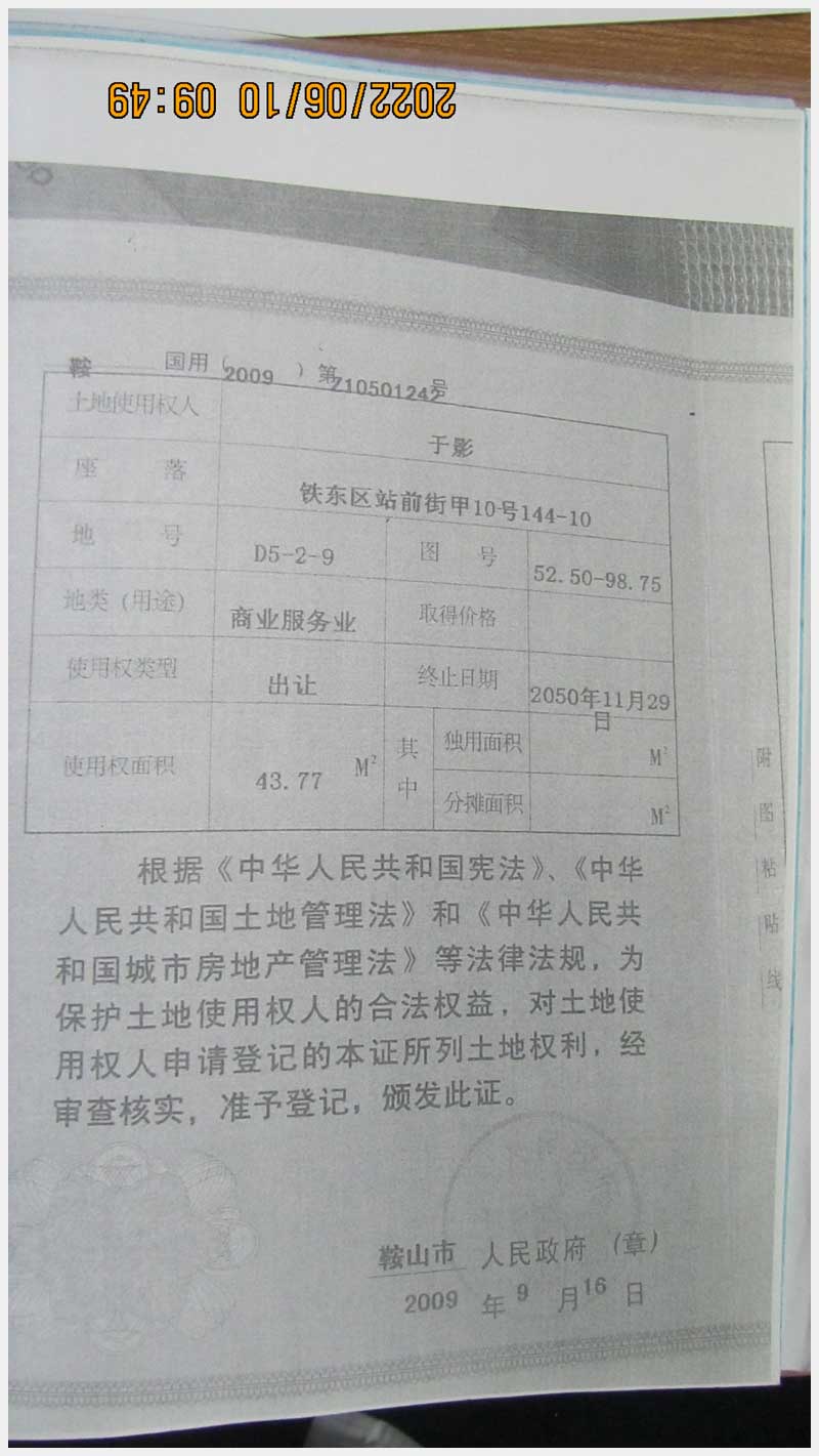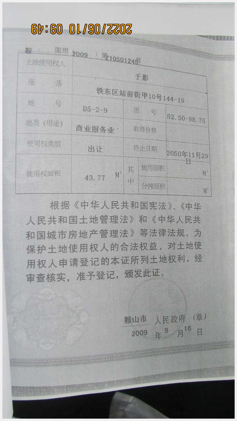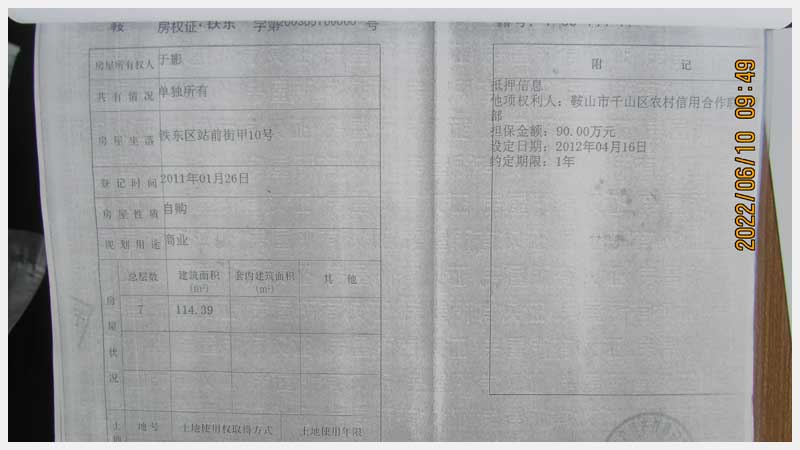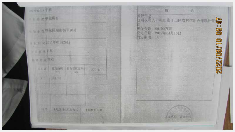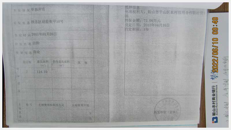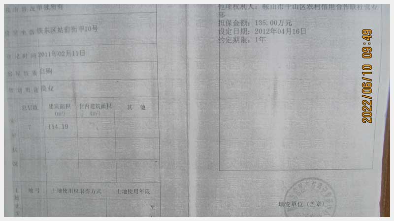 名稱:鞍山市鐵東區(qū)站前街甲10號房產(chǎn) 面積:342.77㎡ 瀏覽次數(shù):1575