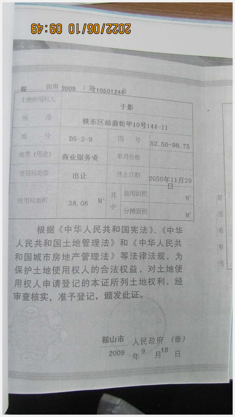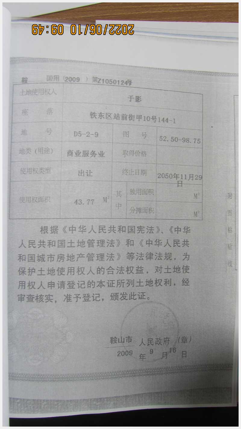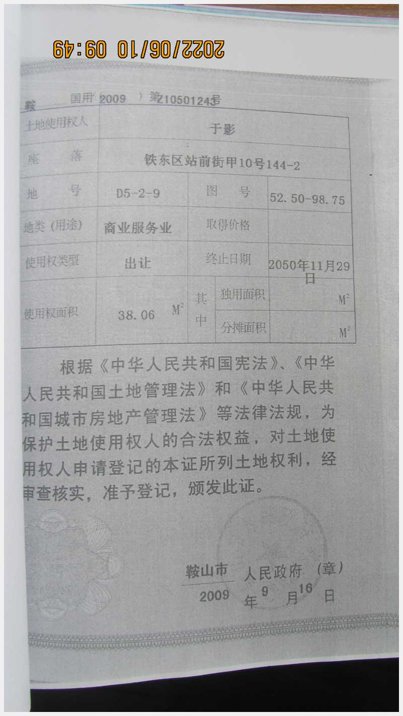 名稱:鞍山市鐵東區(qū)站前街甲10號房產(chǎn) 面積:342.77㎡ 瀏覽次數(shù):1575