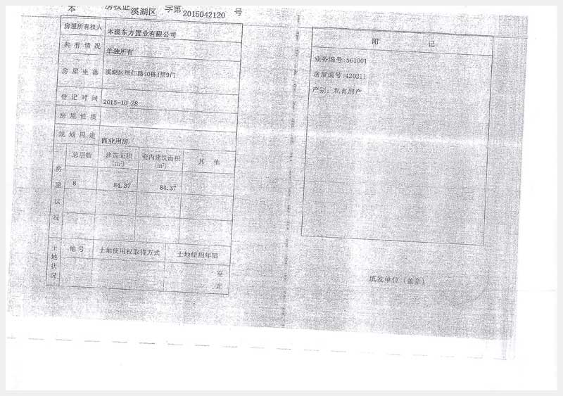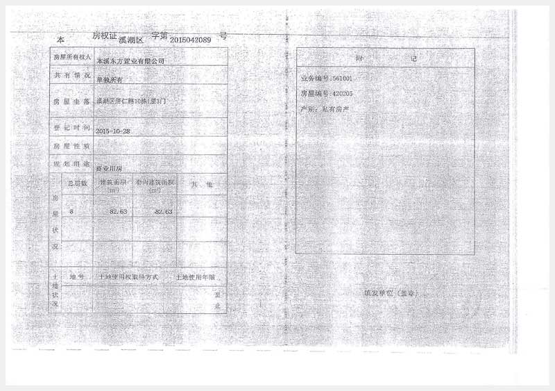 名稱:本溪市溪湖區(qū)居仁路10棟1層1門至9門房產(chǎn) 面積:1門:83.74㎡;2門:39.71㎡;3門:82.63㎡;4門:82.63㎡;5門:75.12㎡;6門:82.63㎡;7門:78.88㎡;8門:80.39㎡;9門:84.37㎡ 瀏覽次數(shù):1065