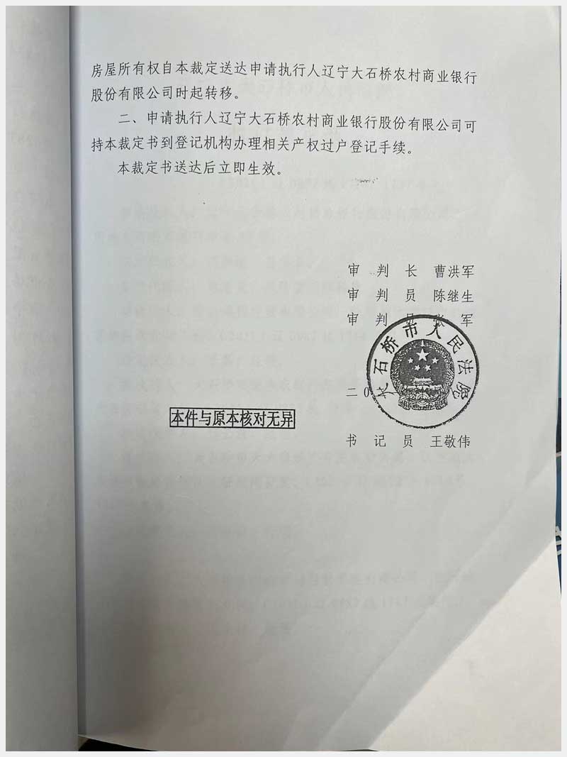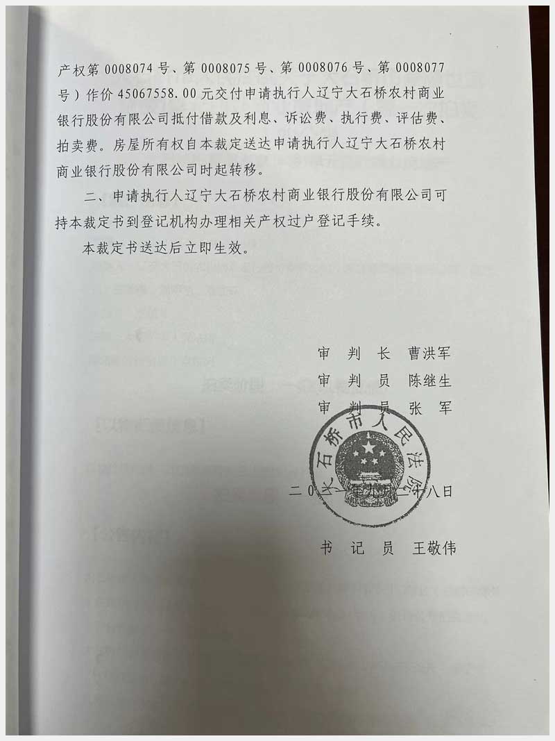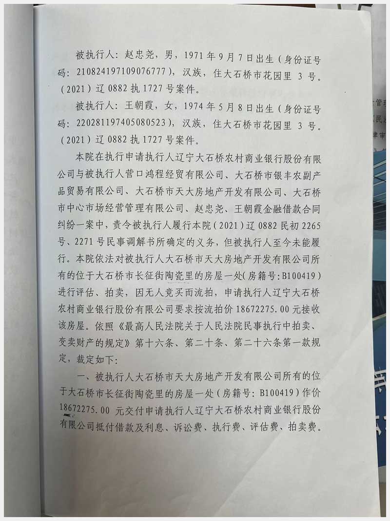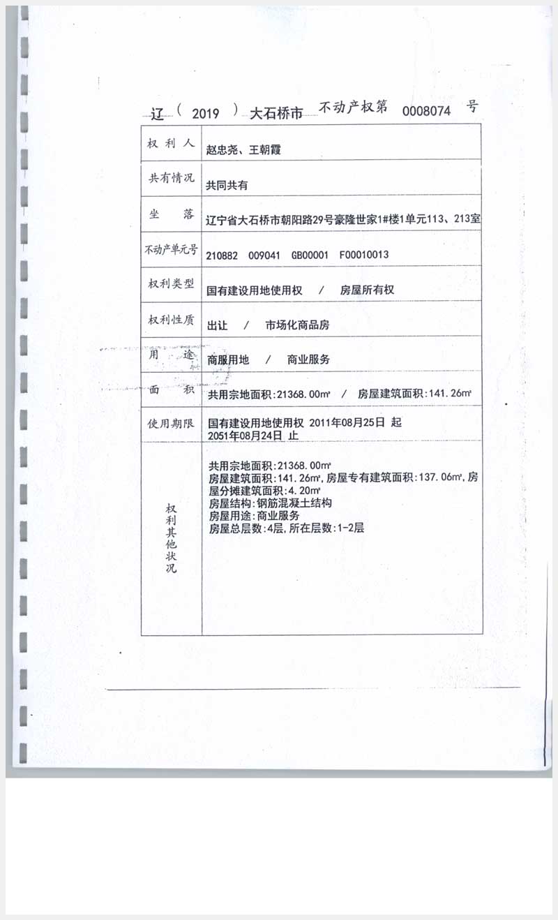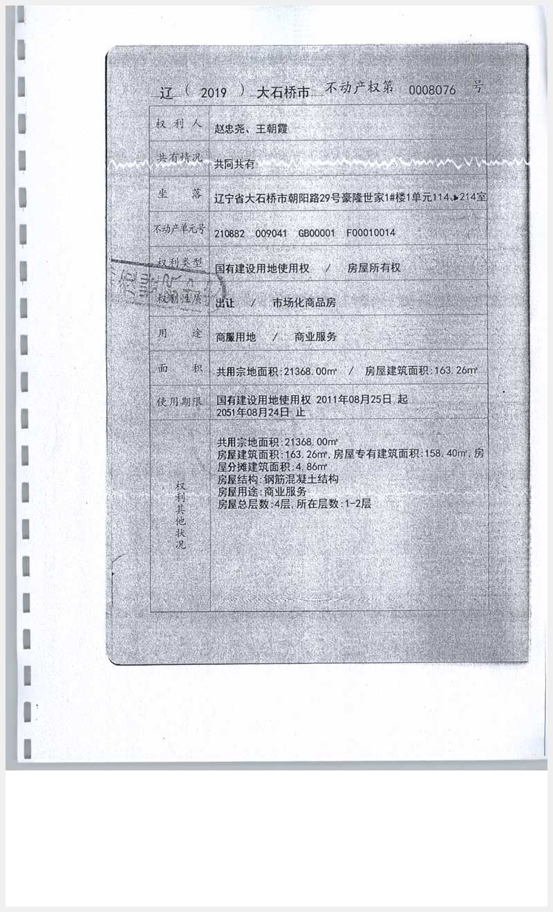 地址:大石橋市朝陽路29號豪隆世家 標的號:11