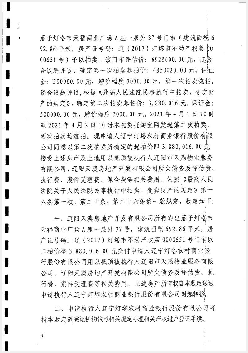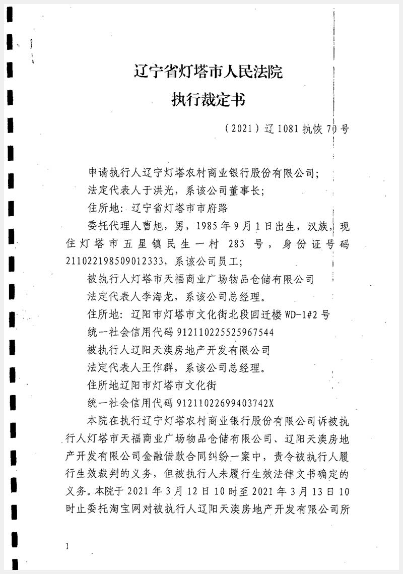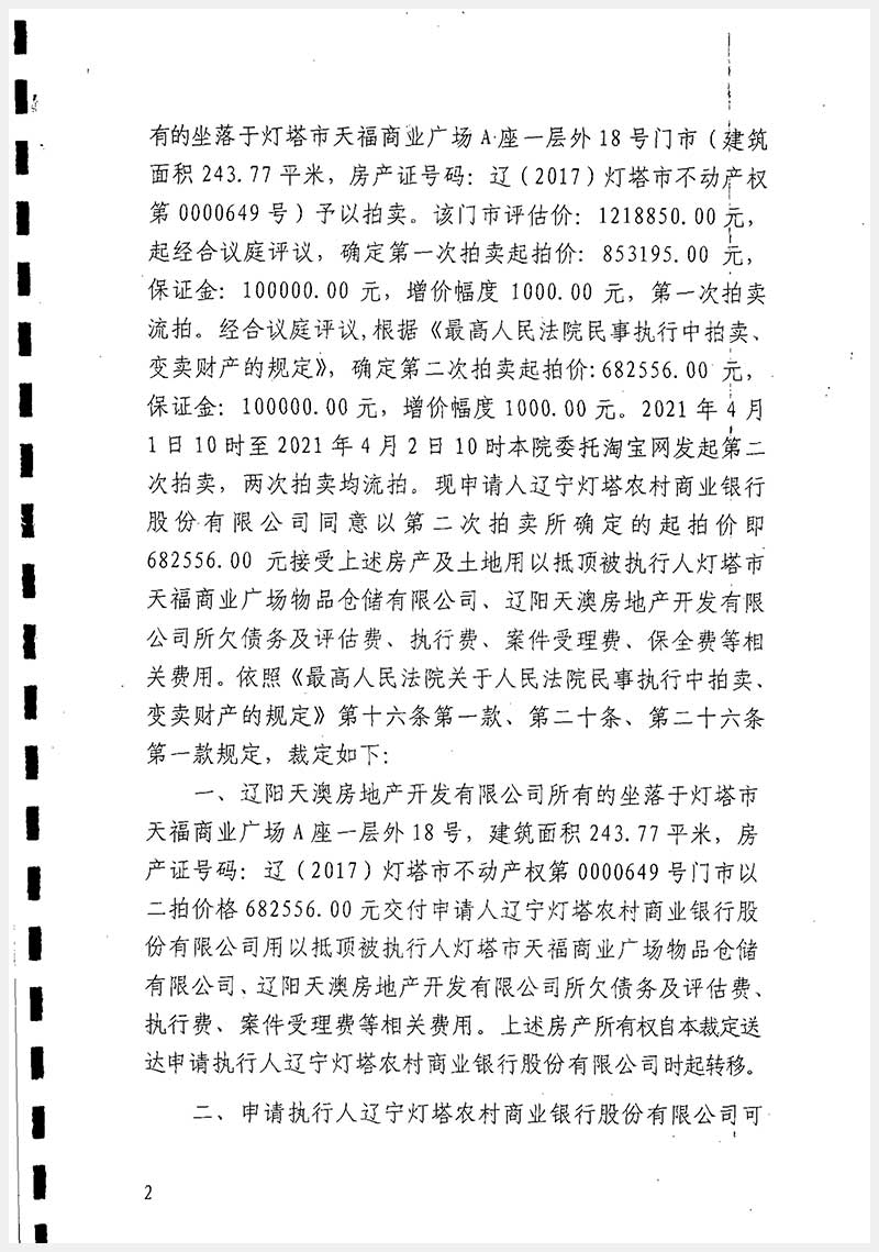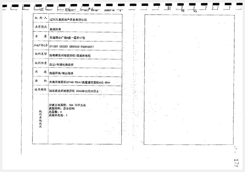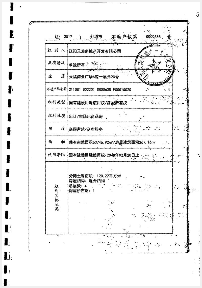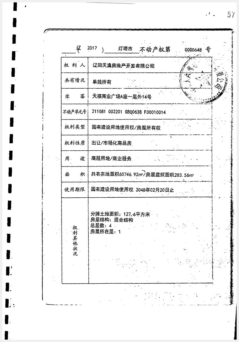 37號(hào) 遼陽(yáng)市燈塔市天福商業(yè)廣場(chǎng)A座房產(chǎn)