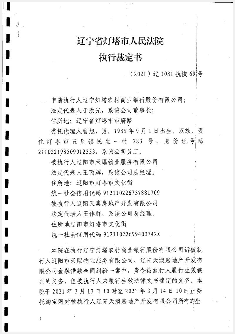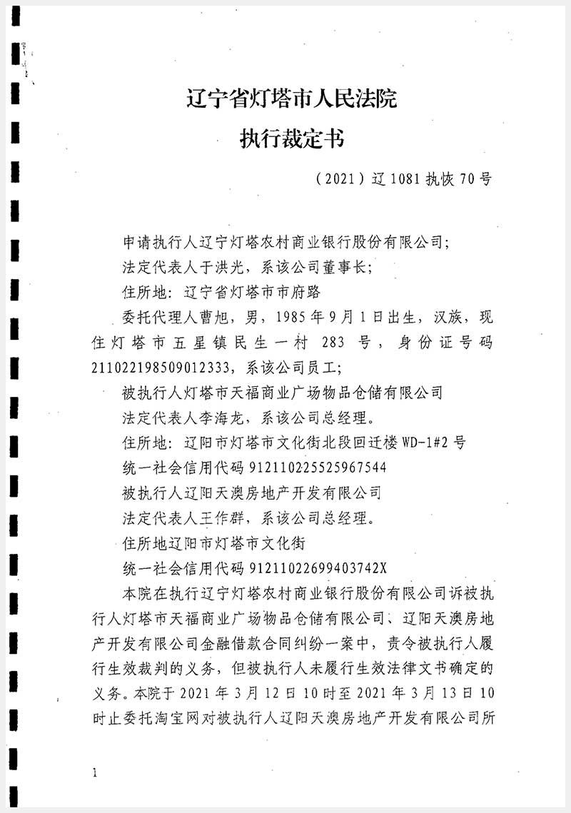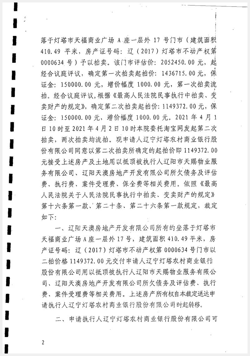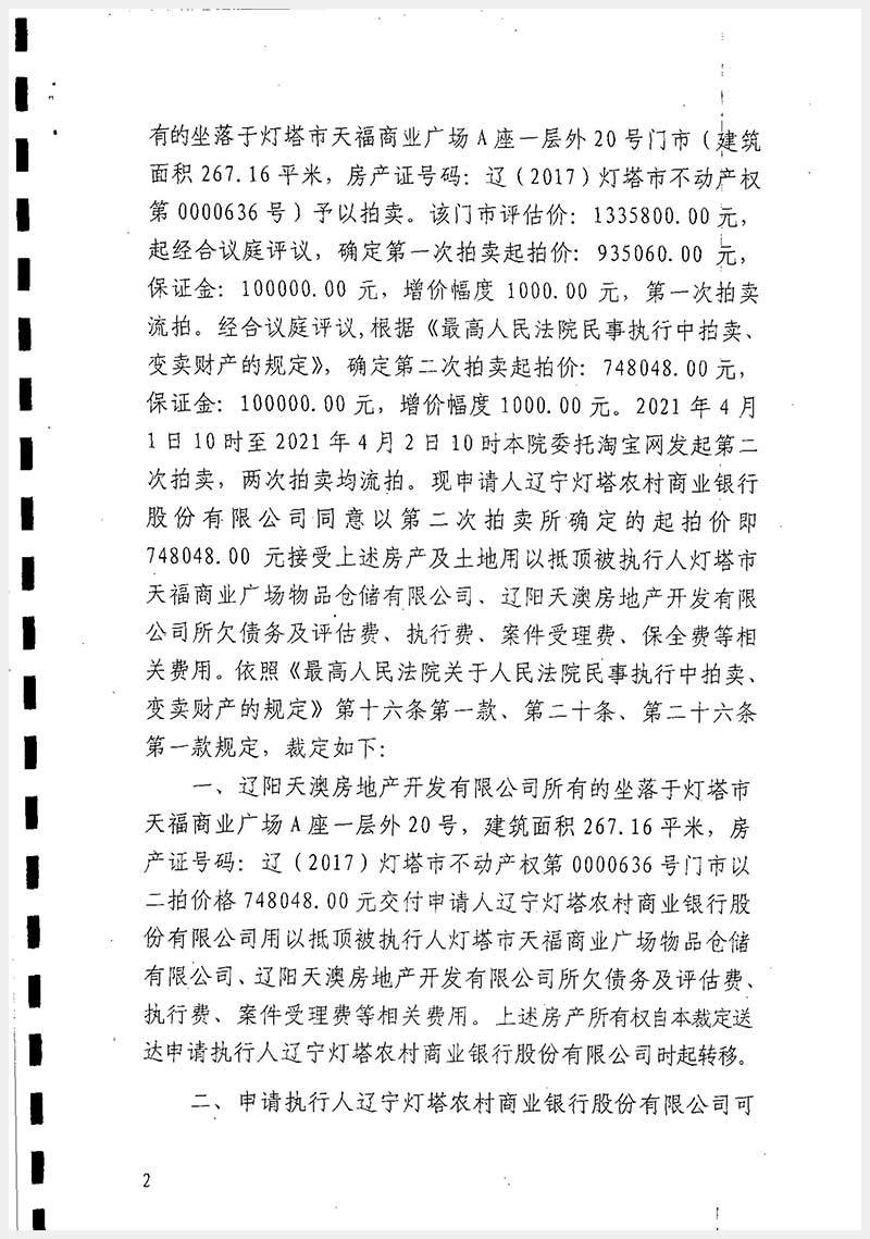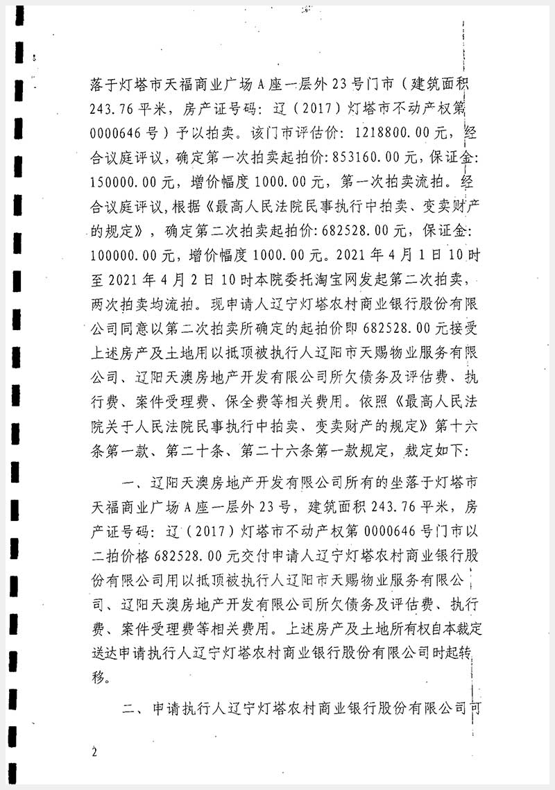 37號(hào) 遼陽(yáng)市燈塔市天福商業(yè)廣場(chǎng)A座房產(chǎn)