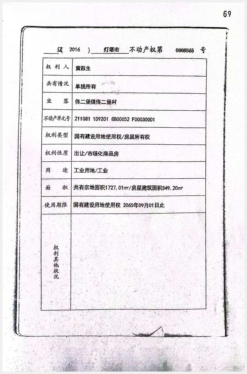 71號(hào) 燈塔市佟二堡鎮(zhèn)佟二堡村房產(chǎn)及土地使用權(quán)