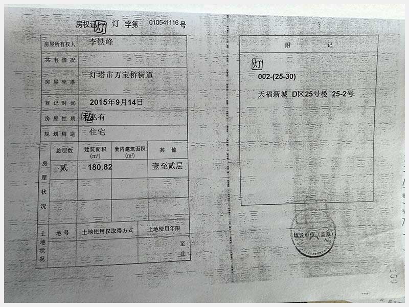 名稱:燈塔市萬寶橋街道天福新城D區(qū)25號樓25-2號房產(chǎn) 面積:180.82㎡ 瀏覽次數(shù):167