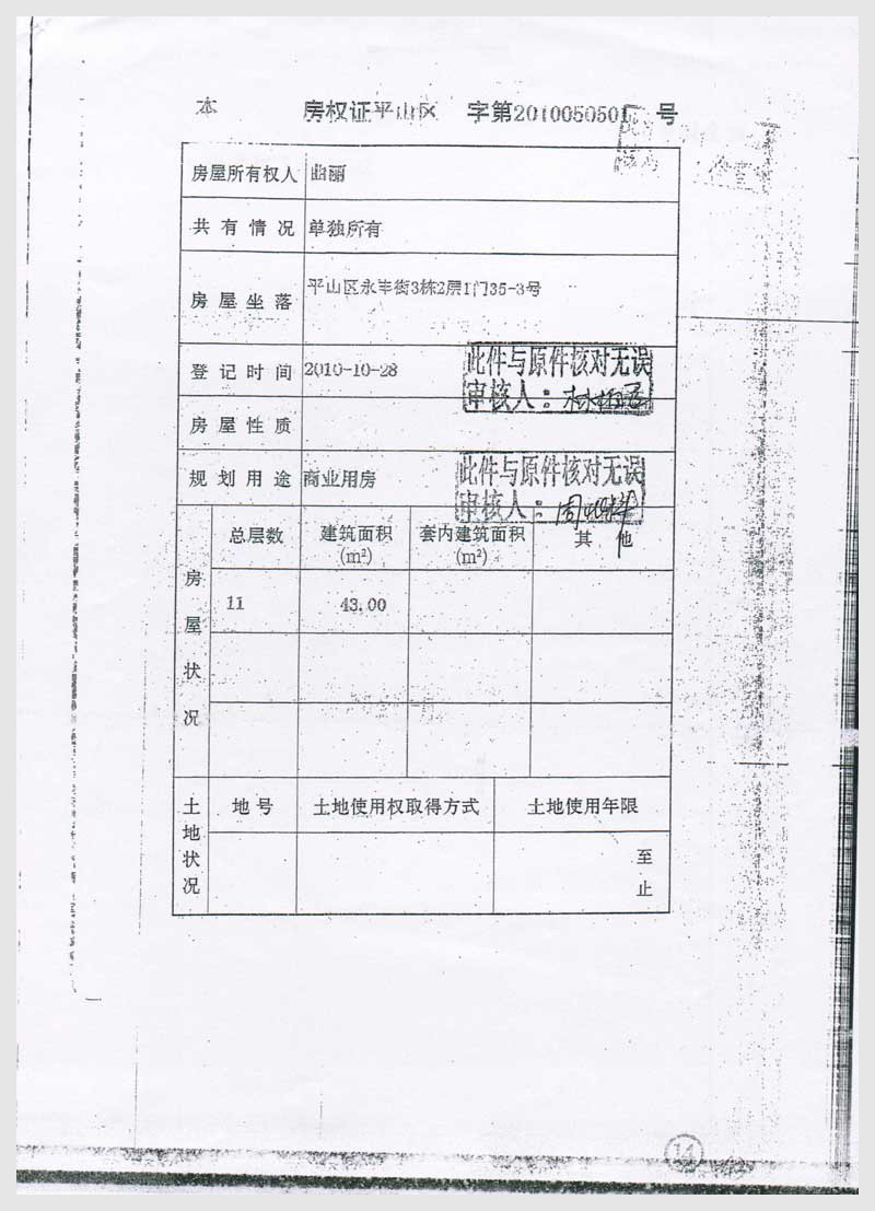 名稱:本溪市平山區(qū)永豐街3棟2層1門35-2號和35-3號房產(chǎn)2處 面積:60㎡/43㎡ 瀏覽次數(shù):2777