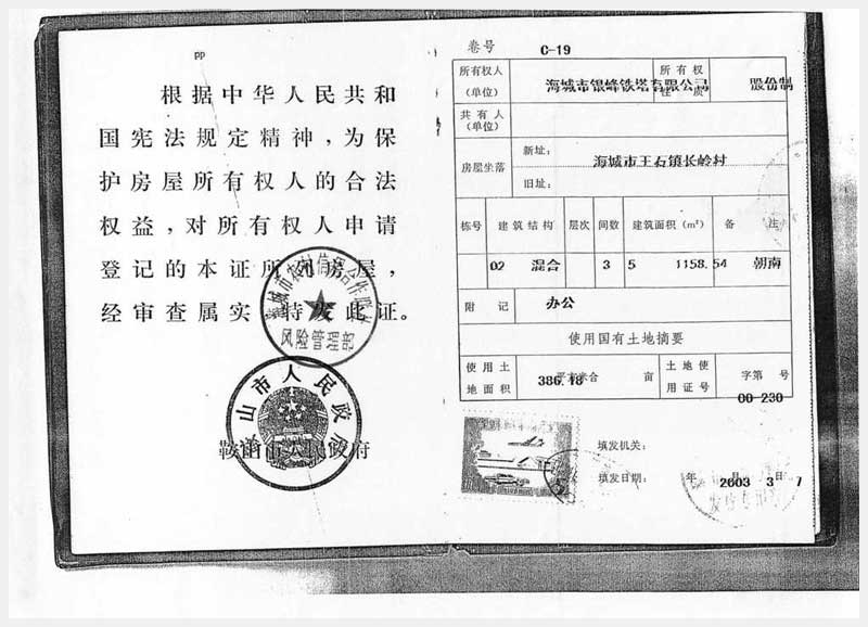 45號 海城市王石鎮(zhèn)房產(chǎn)及附屬物和土地使用權(quán)