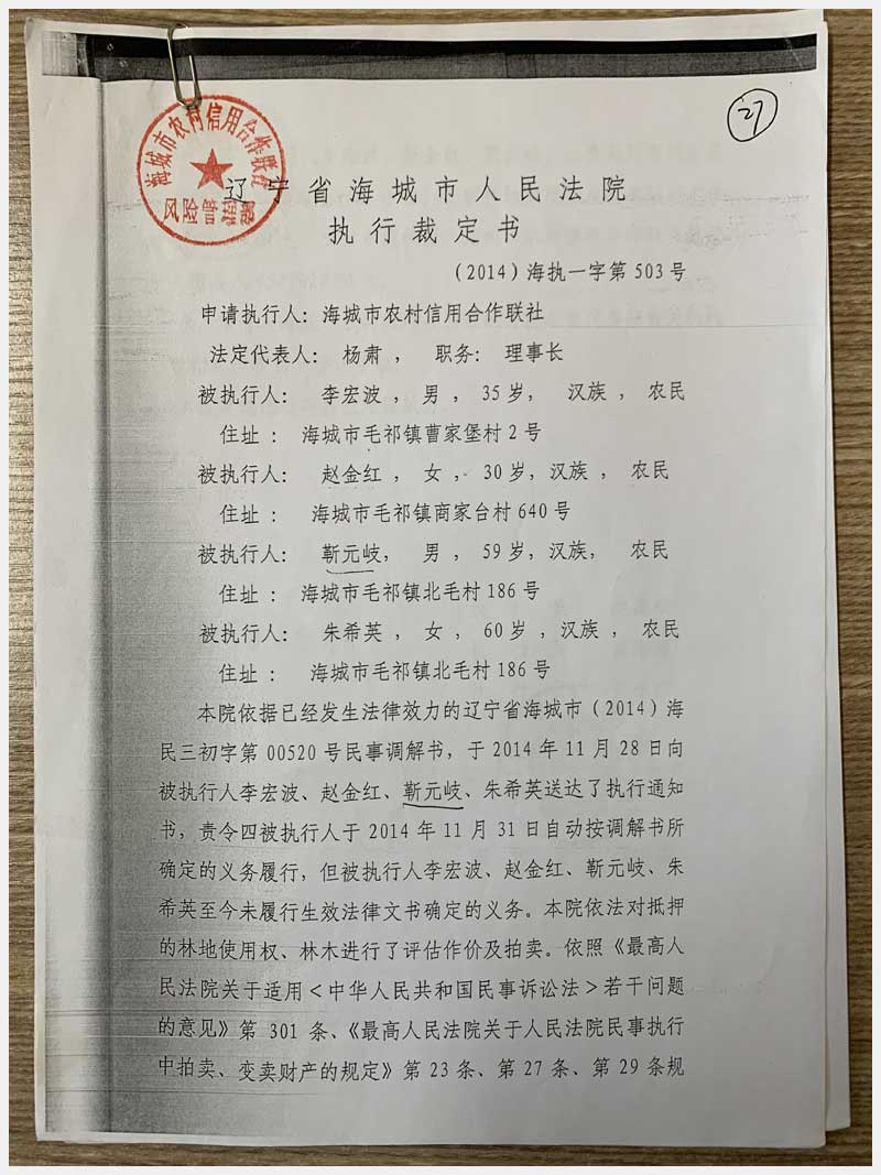 27號 海城市毛祁鎮(zhèn)南毛村的林權