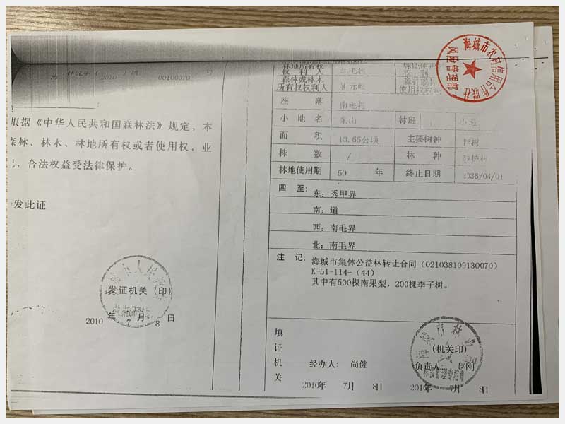 名稱:海城市毛祁鎮(zhèn)南毛村的林權 面積:13.65公頃 瀏覽次數(shù):3305
