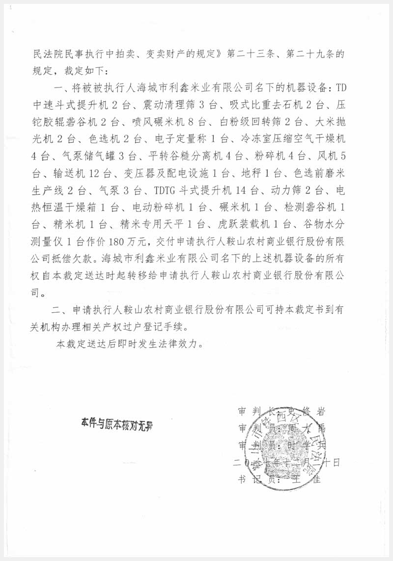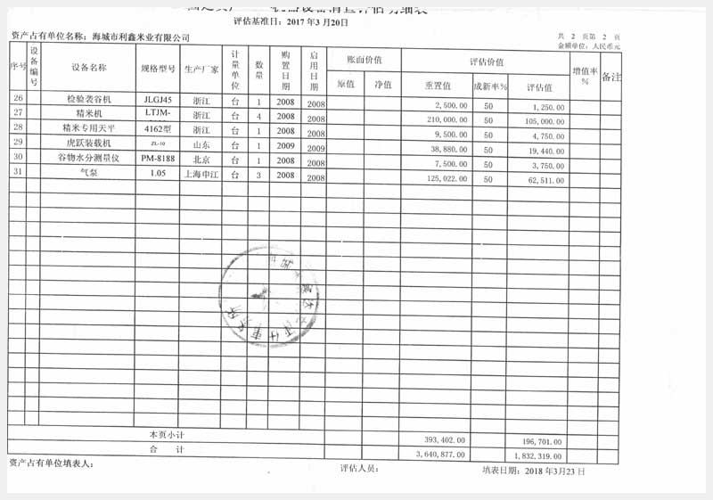 42號 海城市利鑫米業(yè)有限公司所有的機(jī)器設(shè)備