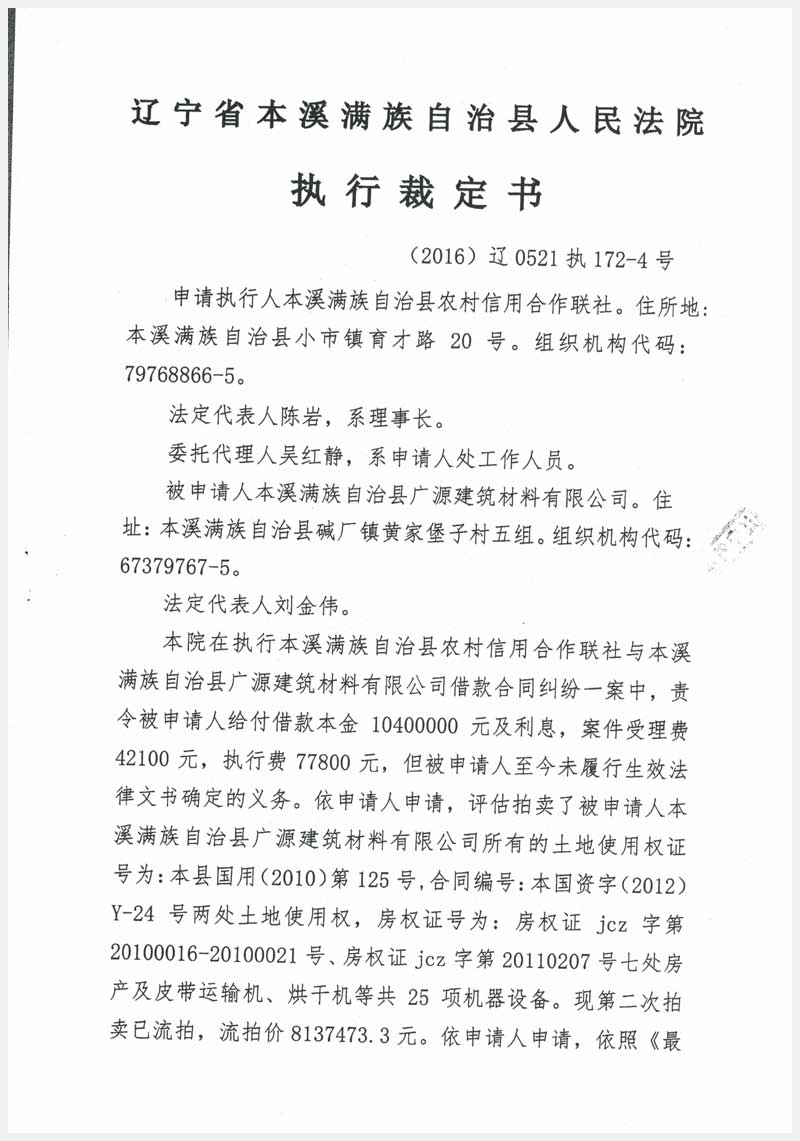 名稱:本溪縣堿廠鎮(zhèn)黃堡村房產(chǎn)7處、土地2處及設(shè)備25項(xiàng) 面積:房產(chǎn):3241.16㎡、土地:9290㎡ 瀏覽次數(shù):2040