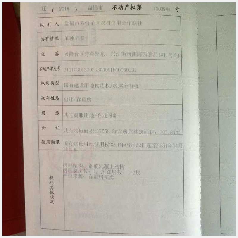 17號(hào) 盤錦渤海地區(qū)海園商網(wǎng)0008棟11號(hào)房產(chǎn)(李陽(yáng))