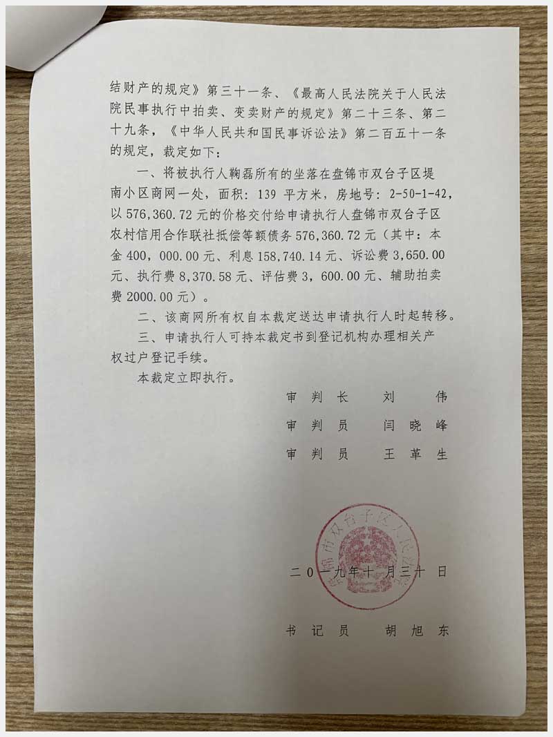 地址:盤錦市雙臺子區(qū)堤南小區(qū) 標(biāo)的號:24