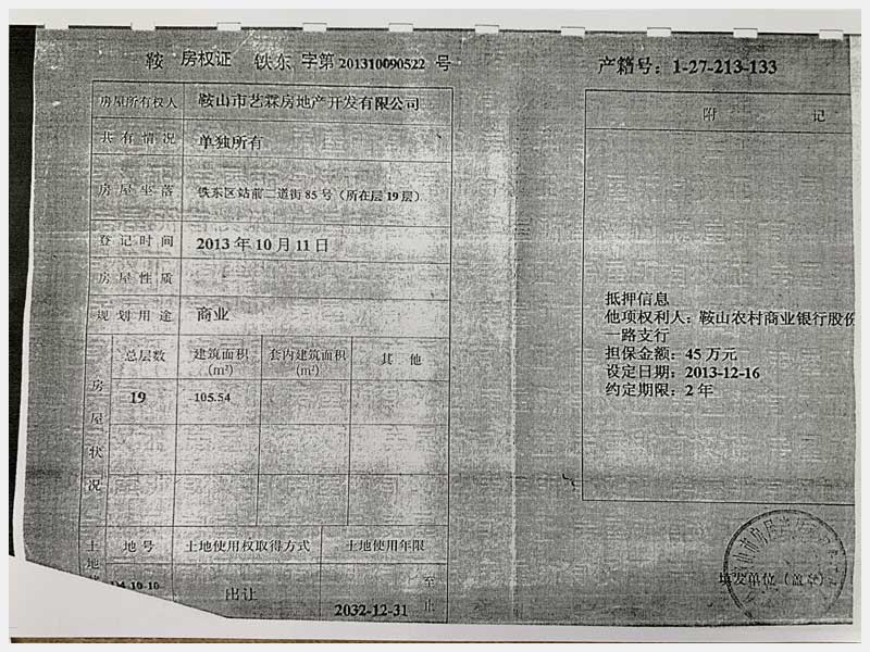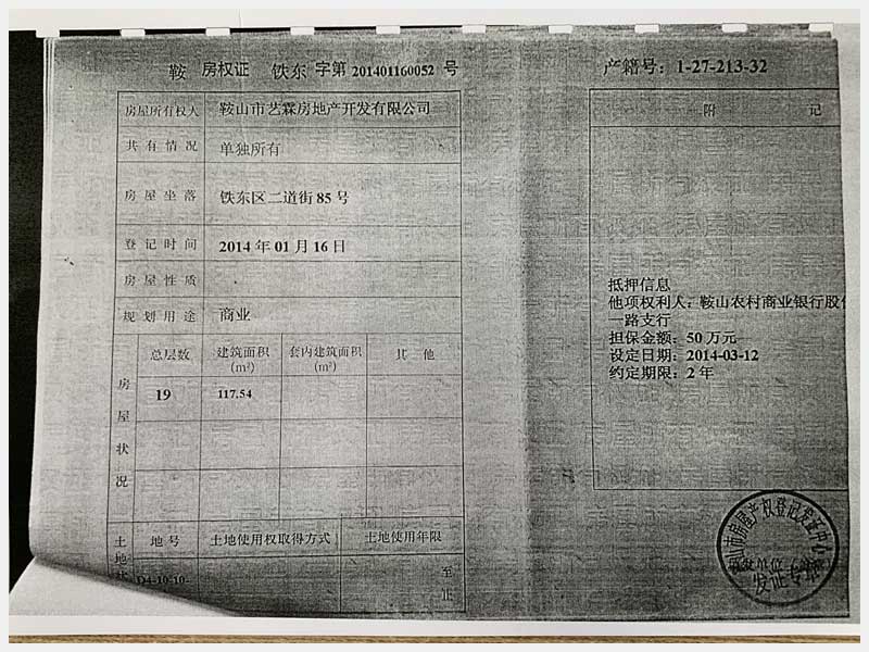 名稱:鞍山市鐵東區(qū)二道街85號房產(chǎn) 面積:1873.32㎡ 瀏覽次數(shù):1693