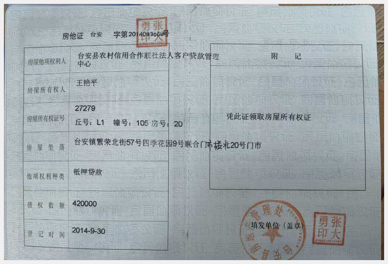 地址:臺(tái)安縣臺(tái)安鎮(zhèn)繁榮北街57號(hào) 標(biāo)的號(hào):70