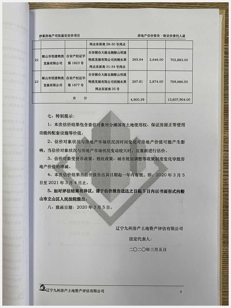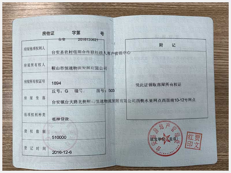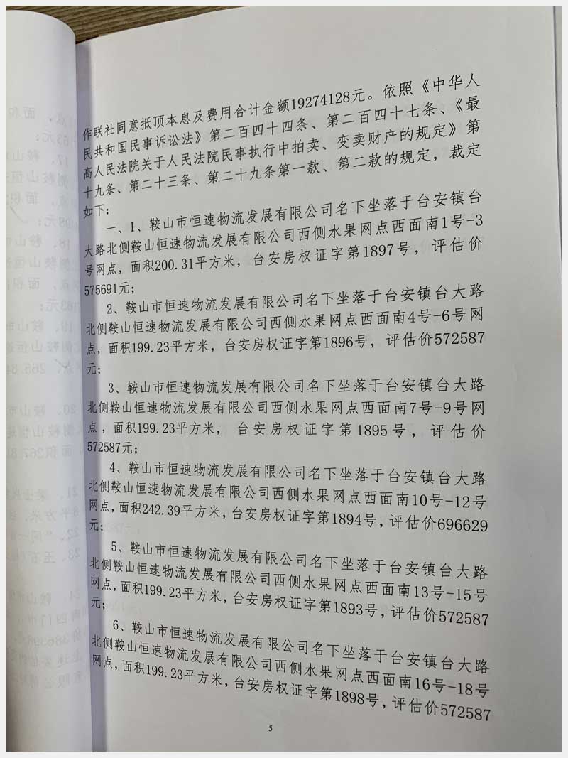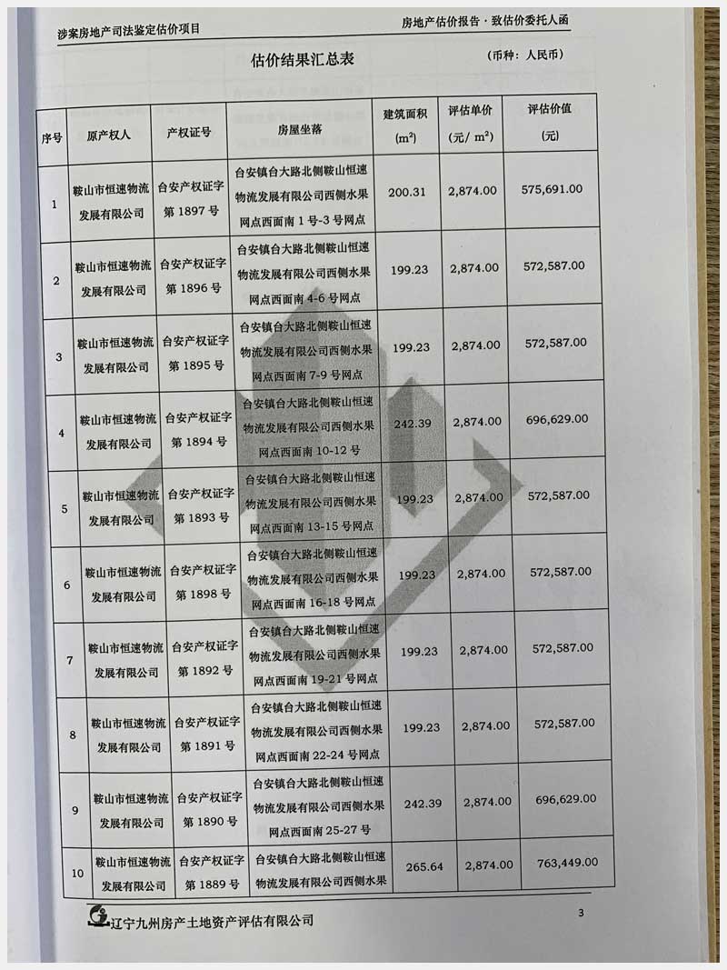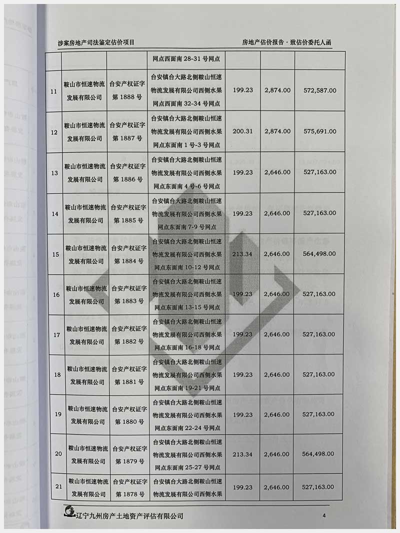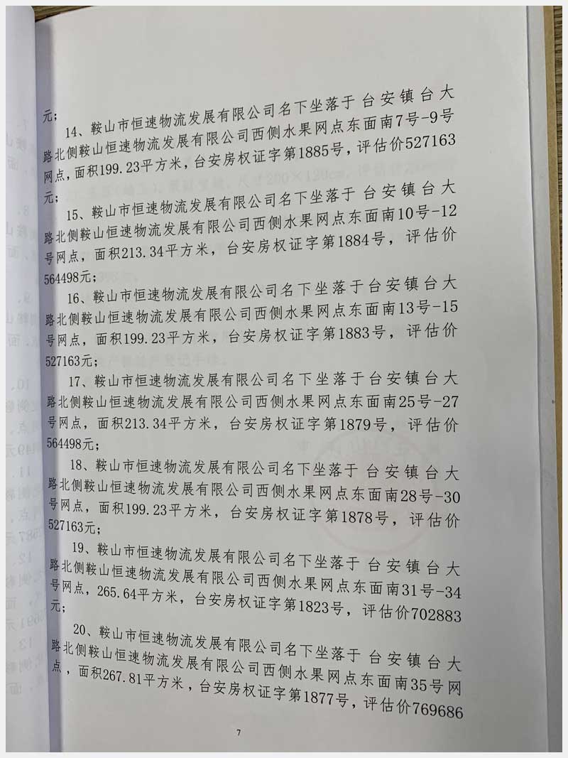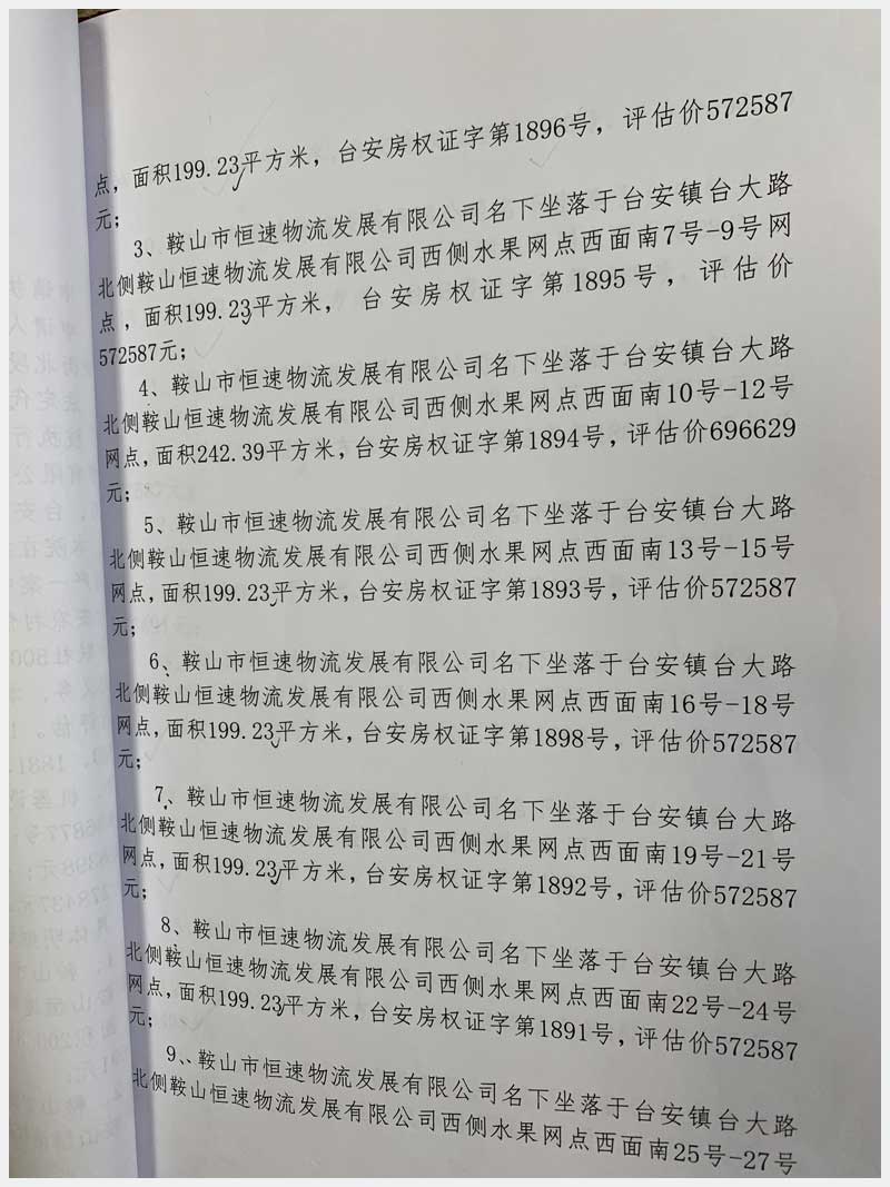 地址:臺(tái)安鎮(zhèn)臺(tái)大路北側(cè)鞍山恒速物流發(fā)展有限公司 標(biāo)的號(hào):71