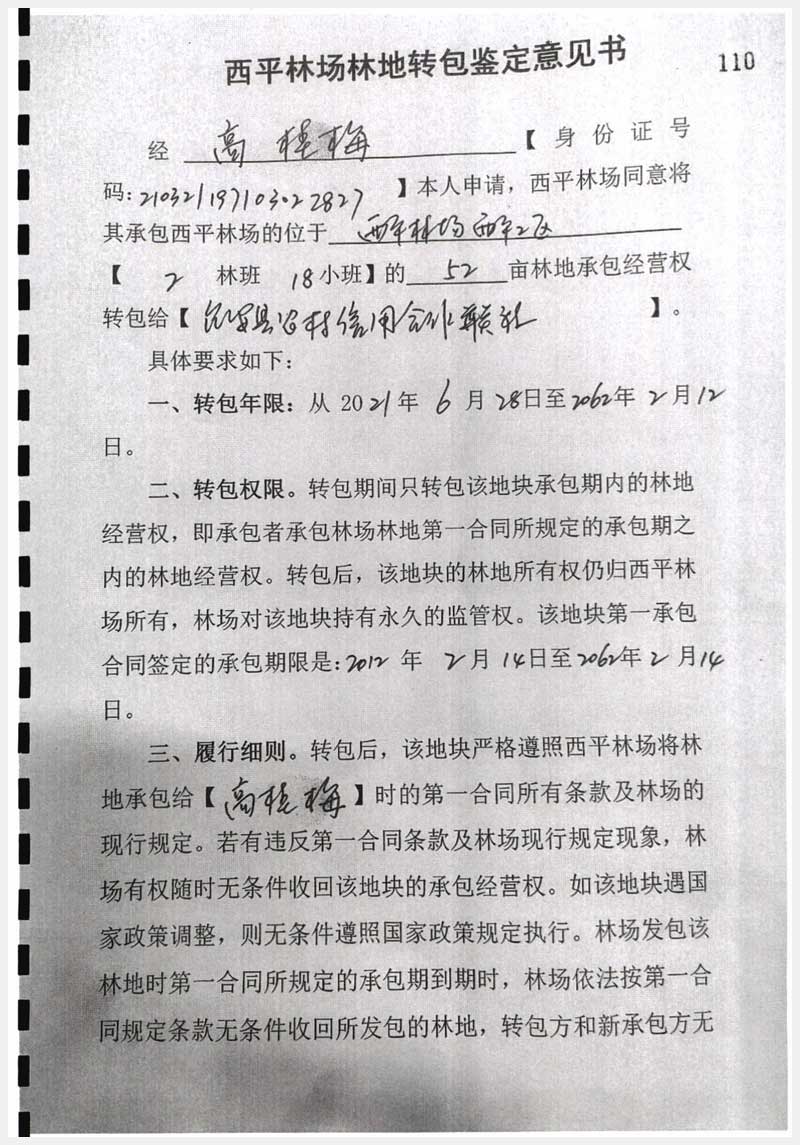 100號 臺安縣西平林場萬福寺北林地經(jīng)營權(quán)