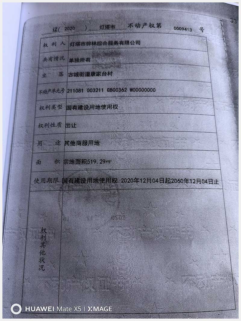 96號 燈塔市古城街道唐家臺村房產(chǎn)及土地使用權(quán)