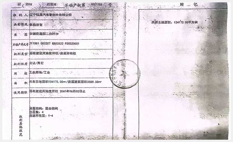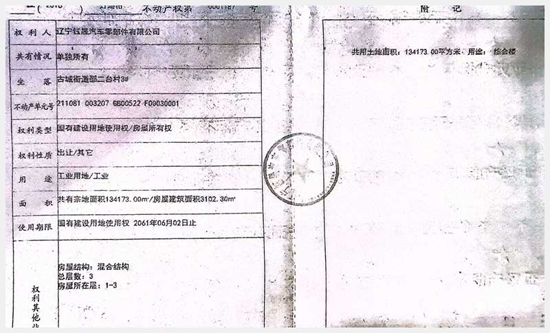 名稱:燈塔市鐵西工業(yè)園區(qū)古城街道邵二臺(tái)村房產(chǎn)及土地使用權(quán) 面積:房產(chǎn):19,551.64㎡;土地:134,173㎡ 瀏覽次數(shù):462
