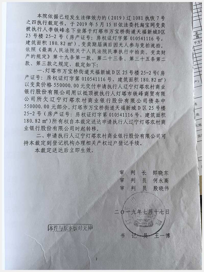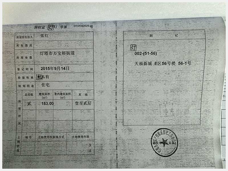 名稱:燈塔市萬寶橋街道天福新城D區(qū)25號樓25-2號房產(chǎn) 面積:180.82㎡ 瀏覽次數(shù):167